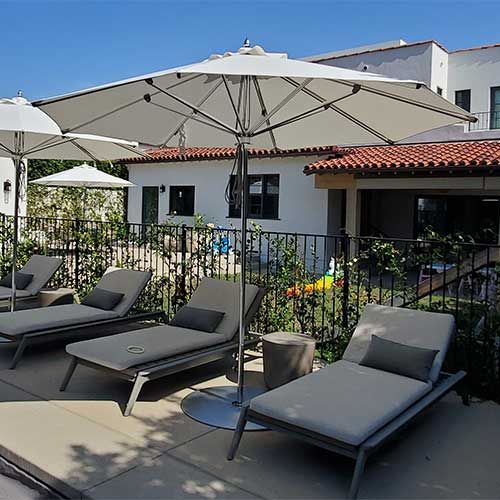 Please contact us for assistance in choosing the proper umbrella base or anchoring system. In the event Frankford shade products are left open and/or unattended in harsh weather conditions, our customer service department is here to help you and promptly assist with parts for repairs. Our shade products offer modular, self-repairable components, which allow customers to service the umbrellas to keep them in perfect working condition.