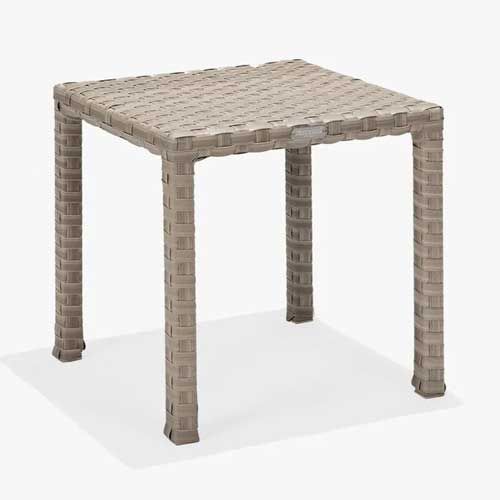 The Nexus Square Side Table is created from an outdoor resin weave material in a neutral Driftwood weave color woven over a powder coated aluminum frame. The Nexus Square Side Table is a nice size when used as a chaise table or simply used as a side table next to a dining chair.