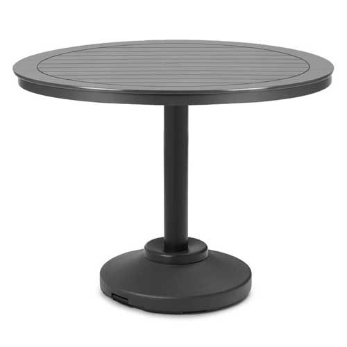 36" Round Commercial Slat MGP Top Table with Hole and 80lb Balcony Height Pedestal Base by Telescope Casual