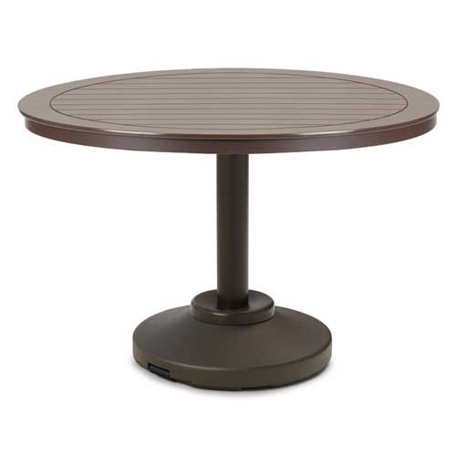 36" Round Commercial Slat MGP Top Table with Hole and 80lb Dining Height Pedestal Base by Telescope Casual