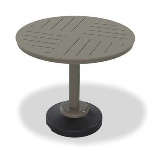 36" Round Marine Grade Polymer Top Commercial Dining Height Table w/ hole and 80lb Pedestal Base - DASH by Telescope Casual