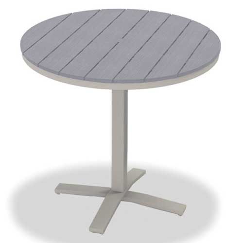 This Telescope Casual Tables Tops are available in many Rustic Polymer colors. Rustic Polymer will not crack rot or separate in outdoor environments. The Rustic Polymer pigment is all through the material so that small blemishes and scratches are less noticeable. Benefits of Rustic Polymer are that it is made from FDA approved resins it is comfortable to the touch on hot and cold days and it is easy to clean.