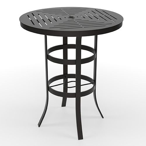 36" Round Commercial Slat Pattern Top with Universal Bar Table Frame by LC Furniture
