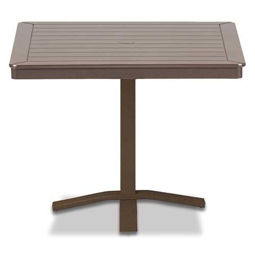 The following products are not covered by our frame and powder coat warranties: table tops, umbrellas, umbrella bases, wood furniture, cushions, slings, straps, and folding aluminum furniture.