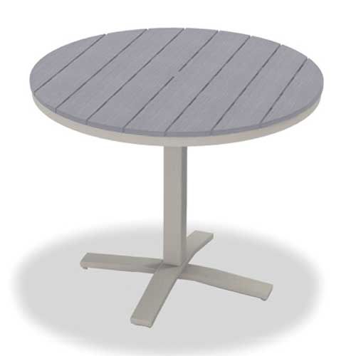 This Telescope Casual Tables Tops are available in many Rustic Polymer colors. Rustic Polymer will not crack rot or separate in outdoor environments. The Rustic Polymer pigment is all through the material so that small blemishes and scratches are less noticeable. Benefits of Rustic Polymer are that it is made from FDA approved resins it is comfortable to the touch on hot and cold days and it is easy to clean.