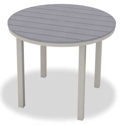 This Telescope Casual Tables Tops are available in many Rustic Polymer colors. Rustic Polymer will not crack rot or separate in outdoor environments. The Rustic Polymer pigment is all through the material so that small blemishes and scratches are less noticeable. Benefits of Rustic Polymer are that it is made from FDA approved resins it is comfortable to the touch on hot and cold days and it is easy to clean.