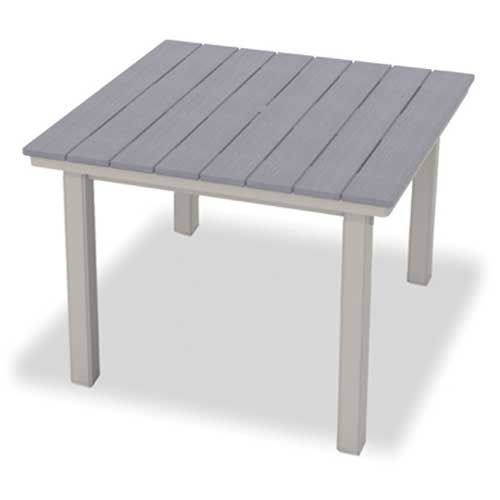 This Telescope Casual Tables Tops are available in many Rustic Polymer colors. Rustic Polymer will not crack rot or separate in outdoor environments. The Rustic Polymer pigment is all through the material so that small blemishes and scratches are less noticeable. Benefits of Rustic Polymer are that it is made from FDA approved resins it is comfortable to the touch on hot and cold days and it is easy to clean.