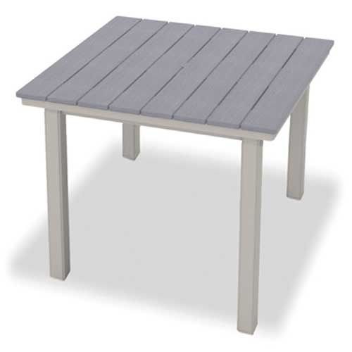 This Telescope Casual Tables Tops are available in many Rustic Polymer colors. Rustic Polymer will not crack rot or separate in outdoor environments. The Rustic Polymer pigment is all through the material so that small blemishes and scratches are less noticeable. Benefits of Rustic Polymer are that it is made from FDA approved resins it is comfortable to the touch on hot and cold days and it is easy to clean.