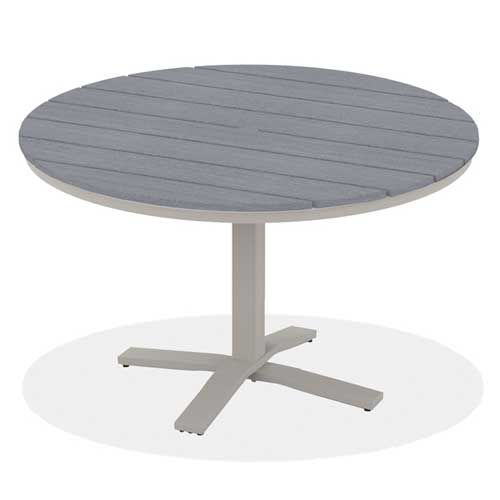 This Telescope Casual Tables Tops are available in many Rustic Polymer colors. Rustic Polymer will not crack rot or separate in outdoor environments. The Rustic Polymer pigment is all through the material so that small blemishes and scratches are less noticeable. Benefits of Rustic Polymer are that it is made from FDA approved resins it is comfortable to the touch on hot and cold days and it is easy to clean.