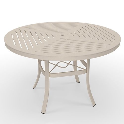 48" Round Commercial Slat Table Top with Universal Dining Table Base by LC Furniture