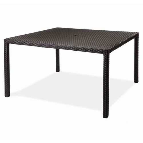 The Nexus 48" Square Dining Table with hole is created from an outdoor resin weave material woven over a powder coated aluminum frame. The Driftwood weave color is a neutral color suitable for any environment. The Nexus 48" Square Dining Table with hole can be used with an umbrella. The 48" square size is a roomy size 4 people.