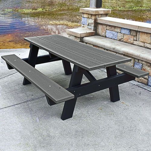 Made with various sized Resinwood slats this table will blend into any traditional environment. The top and seats are made with 2" x 10" Resinwood slats. The table frame is made from 3" x 6" 3" x 4" and 2" x 4" Resinwood slats. Custom colors available for quantity orders. Stainless steel hardware comes standard with this product. This is ADA compliant model.