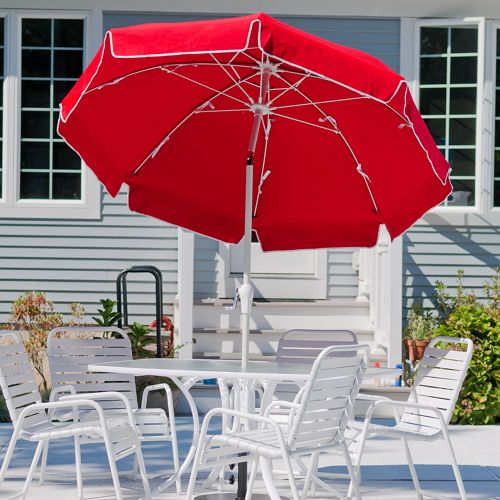 This 7.5' Catalina Crank Umbrella with Vent & Valance offers ease of use with its fantastic crank feature making it perfect for residential applications. The crank feature allows you to open the umbrella with a high quality crank mechanism. This means that you don't have to open the umbrella manually. But that's not all - once your umbrella is open you can manually tilt it! What is a tilt feature? Well - tilt allows you to position (or "tilt") the umbrella canopy at different angles throughout the day. This means that you can block the sun no matter where it might be in the sky! This beautiful umbrella is also fantastically sturdy because of its 8mm solid fiberglass ribs heavy gauge resin parts and spring activated steel ledge.