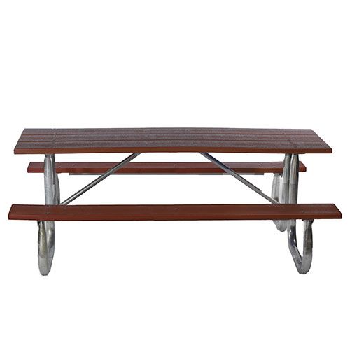 Made with five 2" x 10" Resinwood slats and a hot dipped galvanized 2 3/8 O.D steel frame reinforced with galvanized angle iron cross braces to prevent sagging. Custom colors available for quantity orders. Stainless steel hardware comes standard with this product. ADA model available.
