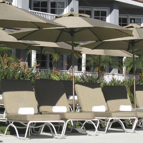 Fabric options offered vary by product. Umbrella canopies made from Sunbrella, Outdura and Tempotest fabrics are warranted from the fabric mill against light fastness. This is a limited pro-rated warranty provided directly from the fabric mill for a period of five (5) years for Sunbrella and Tempotest furniture grade fabrics and for a period of ten (10) years for Sunbrella, Outdura and Tempotest marine grade fabrics. This warranty covers the fabric becoming unserviceable because of loss of color or strength from normal exposure conditions including sunlight, mildew, rot and atmospheric chemicals. It does not cover labor and installation supplied by FiberBuilt Umbrellas & Cushions or any other dealer. In the event that your fabric fails, please contact us to submit a claim and for further details. All fabric must be properly maintained and cleaned regularly for the warranty to be effective. Spun Acrylic, vinyl coated weaves and select marine grade fabrics do not carry an additional warranty.
