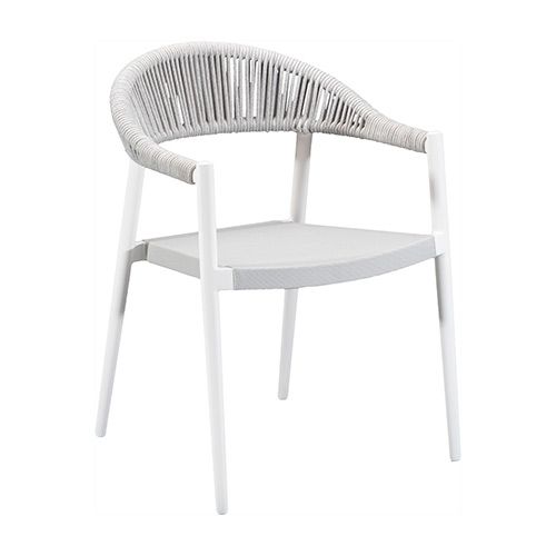 Aluminum Stackable Outdoor Commercial Dining Armchair With Rope Back And Sling Seat