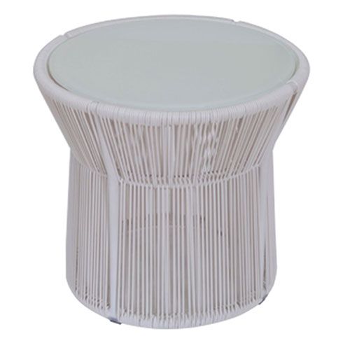 Great option for commercial outdoor lounge areas. The Aruba Commercial Outdoor Side Table with PVC Rope Sides has a powder coated aluminum frame and weather resistant round wicker sides for long-lasting durability outdoors.