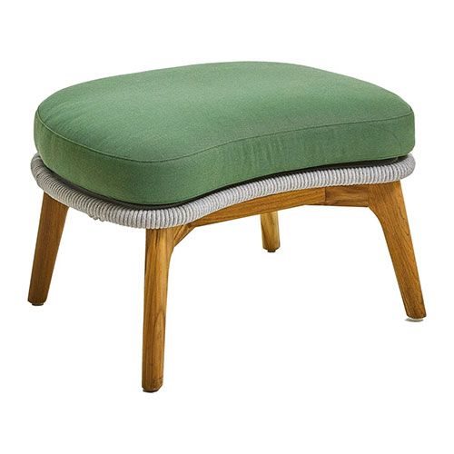 The Bagel Aluminum Commercial Outdoor Patio Footstool with Rope and Cushion is a nice addition to the Bagel outdoor chairs. Its robust aluminum frame, paired with resilient rope and Sunbrella cushion, guarantees enduring comfort and durability in outdoor environments.