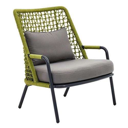 The Banyan Treee Aluminum Commercial Outdoor Patio Lounge Arm Chair With Rope and Cushions, with its stylish and modern design, is an excellent choice for commercial outdoor lounge areas. It features an aluminum frame, complemented by a rope back and Sunbrella cushions, ensuring durability and longevity in outdoor settings.