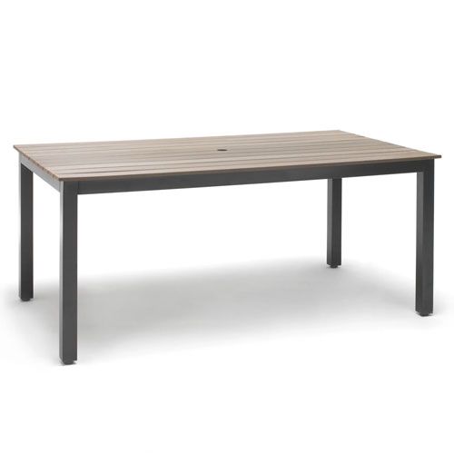 The 71" x 39" Bretange Polywood Top Outdoor Dining Table sits 6 comfortably and has a distinct, popular design for both modern and traditional outdoor spaces. The table top has a beautiful, rustic wood look with contemporary materials for a perfect mix.