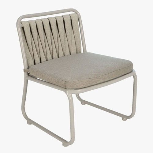 With the Cantata Cushioned Dining Side Chair, enjoy both style and comfort in your outdoor dining setup. Featuring deep cushions and secure Velcro ties for added stability, this chair ensures hours of comfort. The weather-resistant foam weave material and refined design make it perfect for any patio, while the secure and easy-to-maintain cushions keep your space looking pristine.
