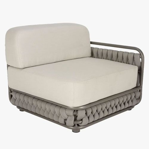 The Cantata Left End Chair offers flexibility and comfort for your outdoor space. This modular piece is ideal for creating a personalized seating arrangement, featuring deep cushions secured with Velcro ties for ultimate comfort. With its weather-resistant materials and stylish design, the Left End Chair is the perfect addition to any outdoor setting.