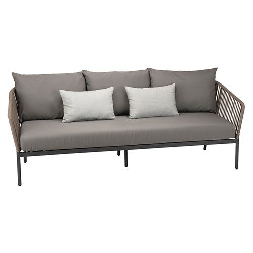 A great option for commercial outdoor lounge areas. The Captiva Aluminum Commercial Outdoor Patio 3 Seat Sofa With Strap and Cushions has an aluminum frame, with straps and cushions for long-lasting durability outdoors.