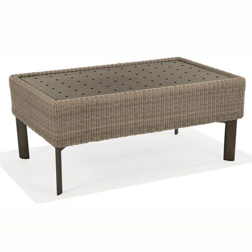 The Coeur D'alene Rectangular Coffee Table features a stamped aluminum top paired with a sophisticated hand-woven polyethylene Resinweave. The combination of aluminum and Resinweave create a sophisticated outdoor coffee table that is low maintenance and stylish.