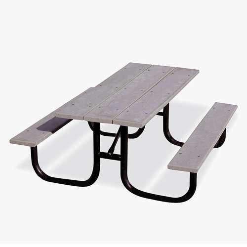 The 6' Heavy Duty Table Recycled Gray Plastic Table is the perfect low-maintenance picnic table for any outdoor environment. It features an attractive grey recycled top and seat in a universal transitional style.