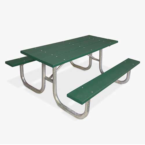 The 8' Extra Heavy-Duty Recycled Plastic Table is a durable picnic table option ideal for parks, play areas or any commercial space. It features a strong metal frame paired with a recycled plastic seating and tabletop to offer the most in durability and strength.