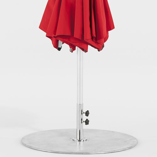Talk about options. The Galvanized Steel Plate Base ships to you ready to use. Low profile, stackable, 4 sizes available in decending weights, applicable use under a table or complete free-standing. These plates are stackable up to 555lbs. to create a heavier base for a more secure anchor. All galvanized plates can be stacked in any combination double or triple stack for additional weight as needed. You simply need to install an 8" stem or an 18" stem (available in 1.5" or 2" widths) for standard umbrella use.