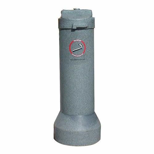 The SBCR Smoker's Butler is a 1,000 butt container is an easy and efficient way to dispose of cigarette waste. The SBCR has a spun aluminum center chute leading to a steel lined container to extinguish the cigarette. Available in two colors- Tan & Gray.