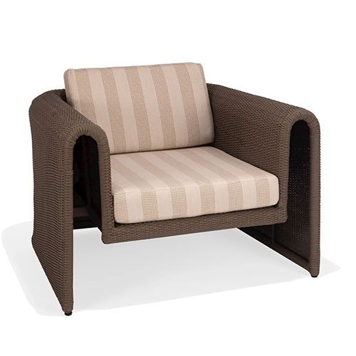 The Em Lounge Chair marries modern style and comfort. Its sinuous curves flow gracefully into sculpted armrests and rounded angles. The weather resistant flat Polypropylene Rope weave tightly hugs an aluminum suspension frame that makes the seat appear to be floating on air. The Em Lounge Chair is available in Mocha with a premium all-weather fabric seat cushion to add a pop of color and extra comfort. When paired with the Em sofa and love seat, or on its own—it is sure to become a guest favorite.