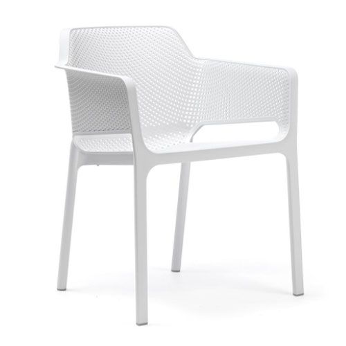 The Net Arm Chair from the Euro Form collection features UV additives ensuring its ability to withstand excessive outdoor exposure and atmospheric agents. Its stylish design and broad arms elevate any outdoor dining experience.