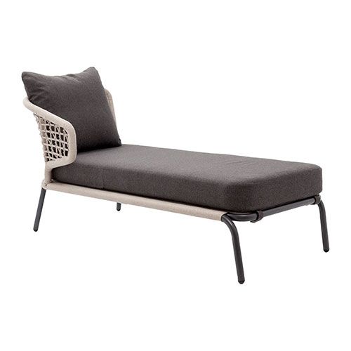 A modern and stylish option for commercial pool areas. The Fiji Aluminum Commercial Outdoor Daybed With Right Arm has an aluminum frame, with rope and cushions for long-lasting durability outdoors.