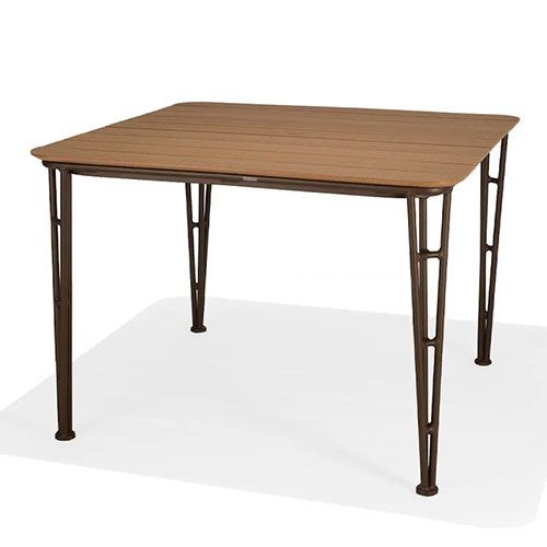 The Fountainhead Square Balcony Table is ideal for outdoor cafe or dining areas. This mixed materials table features a 51” slatted table top made of recycled plastic HDPE (High-Density Polyethylene) that adds all the texture and warmth of natural wood, but (unlike wood) it’s low maintenance and impervious to the outdoor elements.