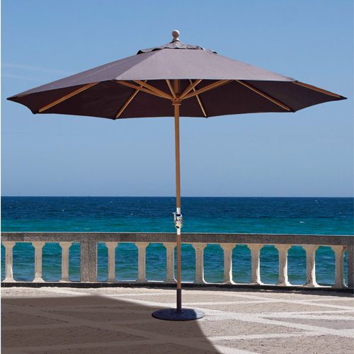 Here is our largest teak market umbrella. It comes complete with upscale features such as the zinc housing plus an outstanding system for effortless lift. Easy to use this 11' outdoor patio umbrella will provide maximum shade for your outdoor gatherings. The manufacturer drills out the center pole and inserts the cable leaving the outer surface of the teak wood free from lines.