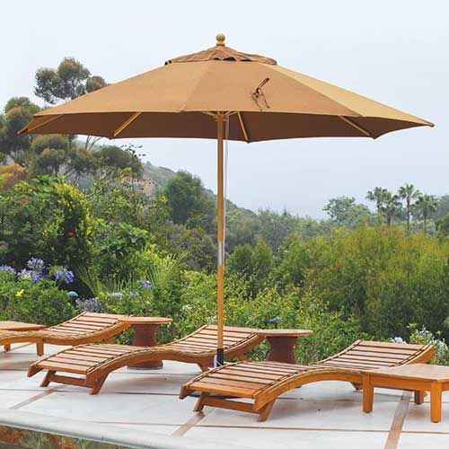 This Suncrylic 11' Wood Market Umbrella with commercial quality is a trend setting unit that is perfect for any large table or commercial application. This umbrella features a high quality wood frame with 7 layers of lacquered finish loads of brass accents to add a touch of class to any atmosphere and heavy duty quad pulley's to easily open and close the canopy.