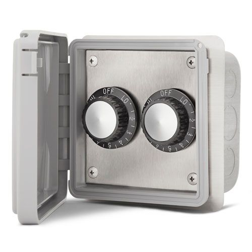 This outdoor flush mount control assembly includes 2 INF10 heat regulators. Perfect for outdoor installation this regulator includes on off and variable control can handle up to 15 amps per regulator and is for 120v Infratech units only