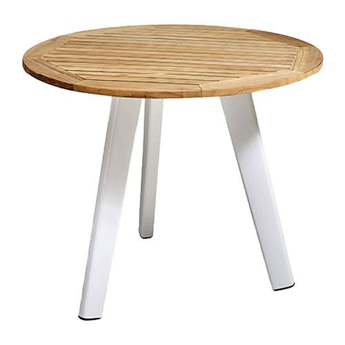 The Jumbo 36" Round Teak Commercial Outdoor Dining Table, offers a chic and contemporary design, making it a superb selection for commercial outdoor lounging spaces. Its strong aluminum frame and teak top, provides lasting durability for outdoor environments.