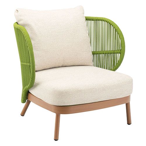 The Jumbo Aluminum Commercial Outdoor Patio Lounge Chair, with Rope and Cushions, boasts a chic and contemporary design, making it a superb selection for commercial outdoor lounging spaces. Its strong aluminum frame is enhanced by a woven rope back and Sunbrella fabric cushions, providing lasting durability and comfort for outdoor environments.