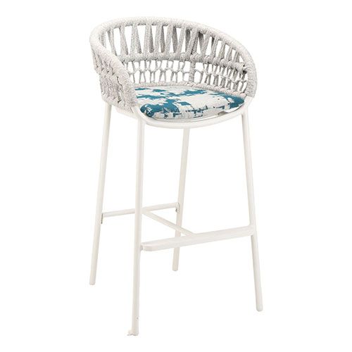 The Laguna Aluminum Commercial Outdoor Patio Barstool With Strap and Cushion is a beautiful choice for outdoor commercial bars and restaurants. It features a durable aluminum frame, straps, and a Sunbrella cushion designed for extended outdoor use.
