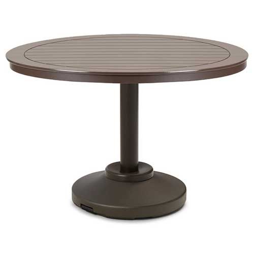 The following products are not covered by our frame and powder coat warranties: table tops, umbrellas, umbrella bases, wood furniture, cushions, slings, straps, and folding aluminum furniture.