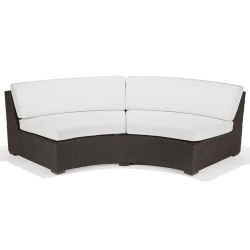 The Nexus Quarter Circle with Back is created from an outdoor resin weave material in a neutral Driftwood weave color woven over a powder coated aluminum frame. This is a unique, one-piece curved armless lounge for use with other pieces in the Nexus Modular Collection. It can be paired with straight pieces or more curved pieces to create a serpentine effect. Or, 4 of the quarter circles can be combined to create a complete circular lounging area. Fill the center with 4 Quarter ottomans and you have yourself a complete round bed.