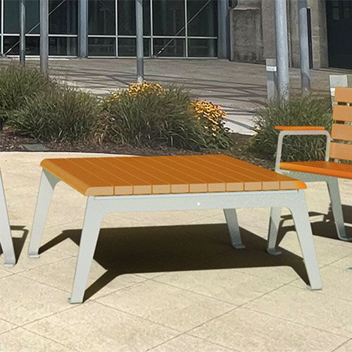 Made with eight 2" x 4" and two 2" x 6" bullnosed Resinwood slats and a highly durable, silver powder-coated steel frame, this table is perfectly matched with the Plaza Chair or with of the Plaza Benches. It also doubles as a bench perfect for ski towns and other resorts and high traffic commercial areas. Frames come with surface mount holes and hardware. Stainless steel hardware standard.