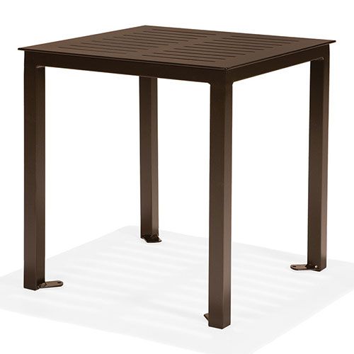 The Portico 27" Square Dining Table is a fully welded aluminum table with an open slat stamped aluminum top. The legs of the Portico 27" Square Table can be surface mounted. This size perfect for a 2-person dining set.