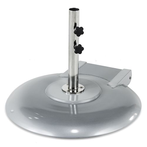 A great umbrella for free-standing commercial or residential use. The Frankford 150 lb. Premium Aluminum Base will keep your umbrella safe and secure. This durable base is made from corrosion-resistant aluminum with a sleek matte silver finish that will complement any outdoor decor. The base accepts most standard sized outdoor umbrellas with 1.5" or 2" pole diameter options. The two easy-to-use screws will secure your umbrella and base together. Whether you have an umbrella in the base or not the built-in wheels make moving relocation a painless affair. Functional and stylish umbrella stand for outdoor use. Sleek aluminum finish won't rust or corrode. Wheels allow for easy mobility. Fits most standard umbrellas up to 13 feet in diameter.