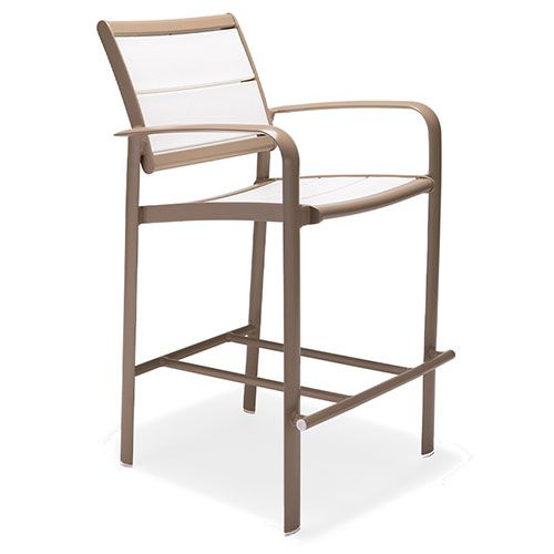 The Seascape M82014 Bar Height Stool has an aluminum frame with HDPE (high-density polyethylene) lumber for the seat. HDPE material is made from post-consumer bottle waste such as milk jugs and detergent bottles, making this an environmentally friendly product. The Seascape M82014 is a transitional design and is available in any Texacraft powder coat finish to coordinate with any one of 4 lumber colors to select from. Optional seat pads are sold separately. The pads add additional comfort and a splash of color to the chair.