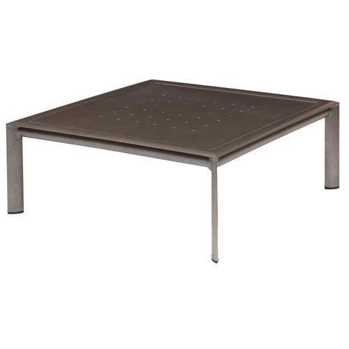 The M35007 Southern Cay Coffee Table is made from commercial grade aluminum extrusions. The top surface is created form a 3/16" stamped aluminum sheet with a geometric center top design. This 35" square table can be finished in any of Texcacraft's powder coat finishes.