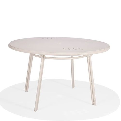 The Surf Dining Table brings retro style to open air dining. The durable tubular aluminum table pairs features a round aluminum table top with subtle notched detailing. The 48” surface is spacious enough to seat 4 guests comfortably with plenty of room for any size meal. Customize with our selection of exclusive powder coat finishes. Pair with our Surf Dining Chairs for the ideal patio or cafe dining set.